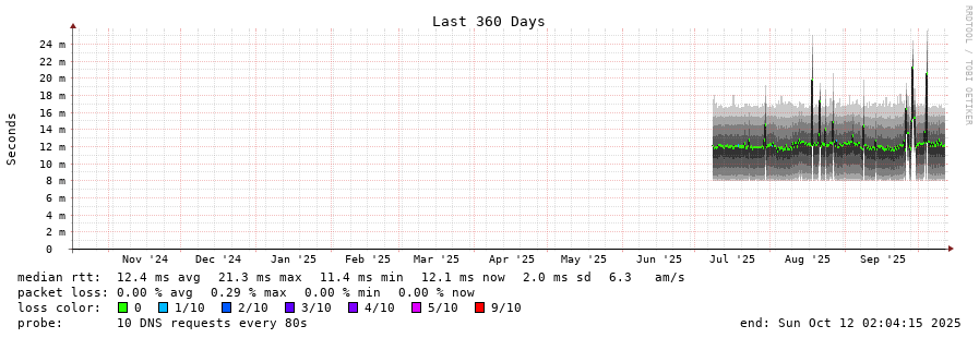 traceroute to 2620:fe::fe (2620:fe::fe), 30 hops max, 80 byte packets - Generated at 2025-10-12 00:15:01