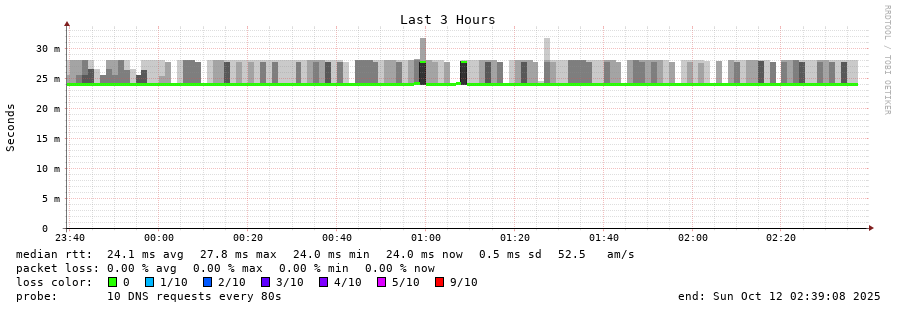 7 > b.root-servers.net (2801:1b8:10::b) [AS394353] 24.651ms 24.579ms 24.594ms