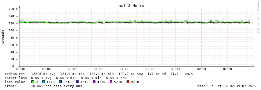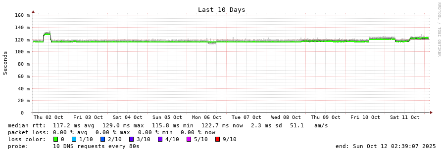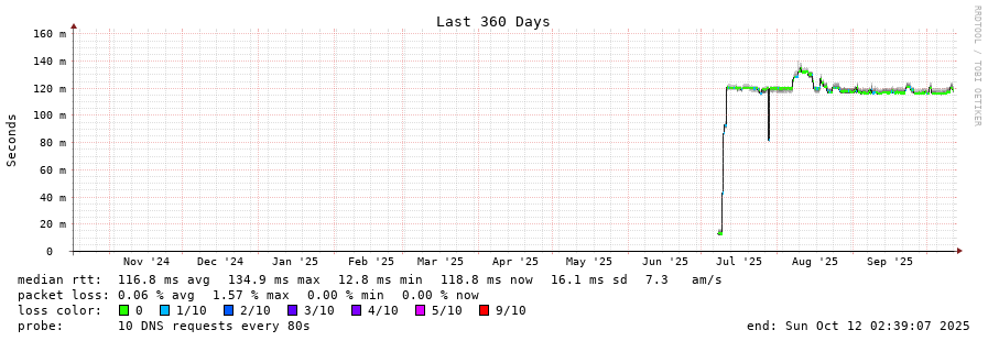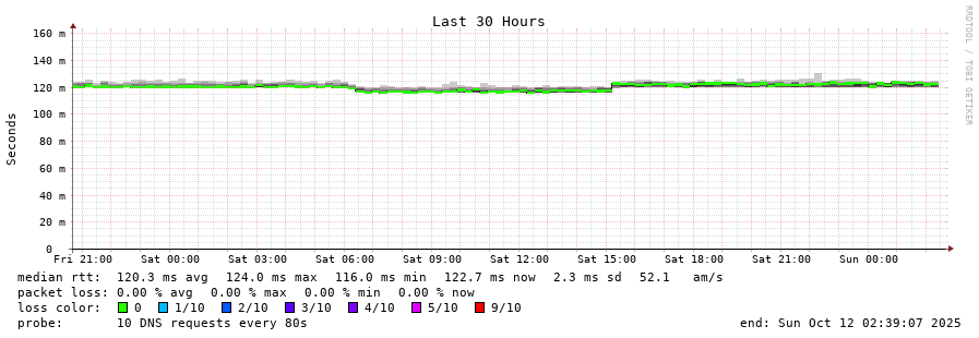 traceroute to 2001:7fe::53 (2001:7fe::53), 30 hops max, 80 byte packets - Generated at 2025-10-12 02:30:01