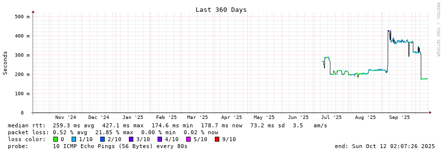 traceroute to 203.171.240.1 (203.171.240.1), 30 hops max, 60 byte packets - Generated at 2025-10-12 00:30:01