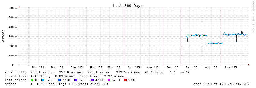 8 > 80.84.20.244 (80.84.20.244) [AS6774] 264.923ms 264.800ms 264.752ms