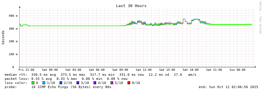 18 > 61.88.33.2 (61.88.33.2) [AS7474] 333.001ms 332.132ms 333.815ms