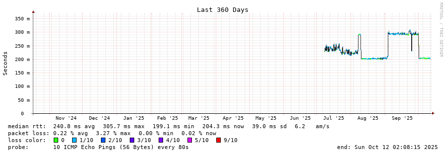 traceroute to 203.144.225.242 (203.144.225.242), 30 hops max, 60 byte packets - Generated at 2025-10-12 00:30:01