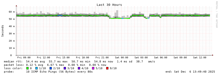 traceroute to 140.233.190.32 (140.233.190.32), 30 hops max, 60 byte packets - Generated at 2025-12-06 13:45:01