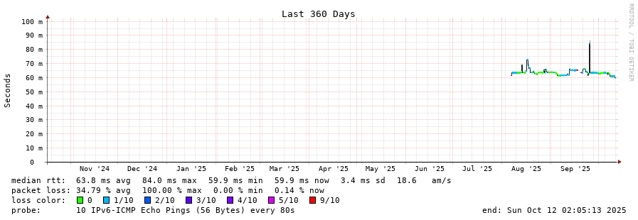 traceroute to 2001:35c0::204:27:68:152 (2001:35c0::204:27:68:152), 30 hops max, 80 byte packets - Generated at 2025-10-12 00:45:01
