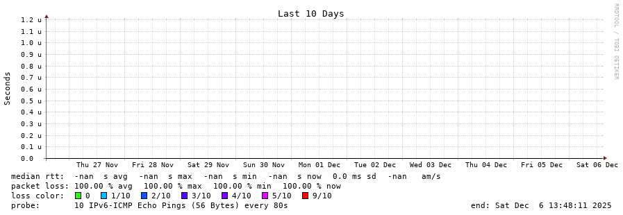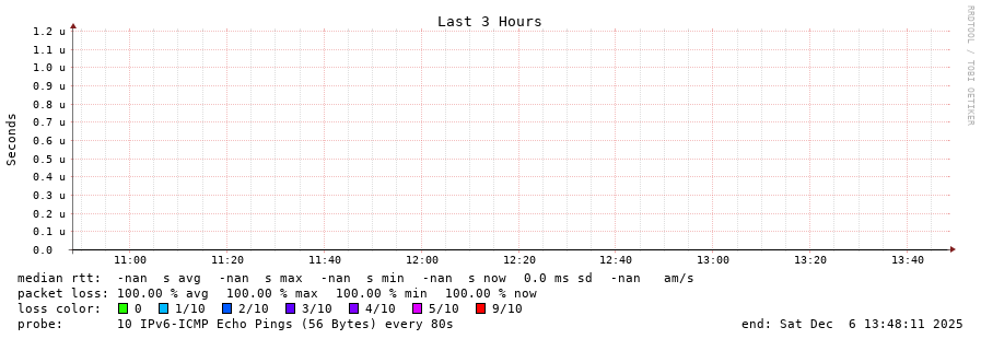 traceroute to fd9b:f75:a3d5::2 (fd9b:f75:a3d5::2), 30 hops max, 80 byte packets  -  Generated at 2025-12-06 13:45:01