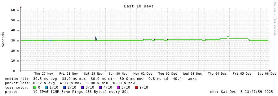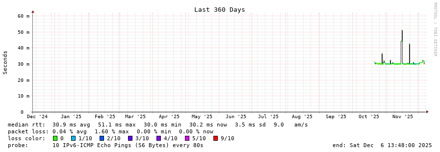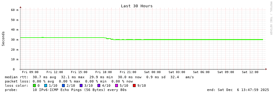 traceroute to 2001:67c:10:1102::11 (2001:67c:10:1102::11), 30 hops max, 80 byte packets - Generated at 2025-12-06 13:30:01