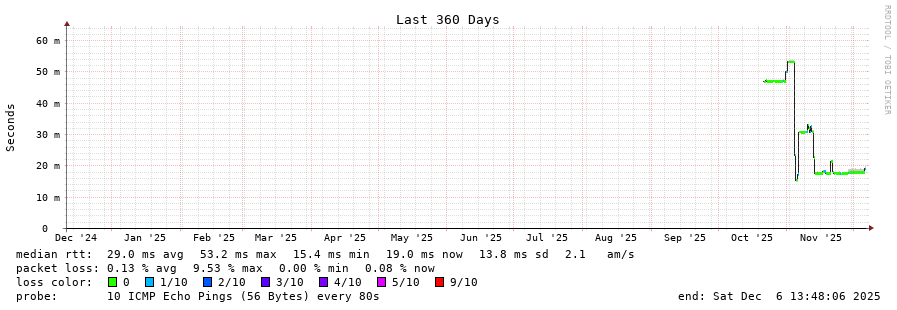 traceroute to 5.15.79.0 (5.15.79.0), 30 hops max, 60 byte packets - Generated at 2025-12-06 13:30:01