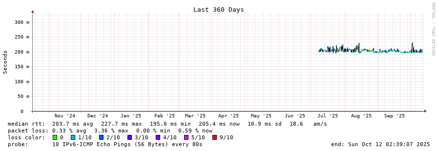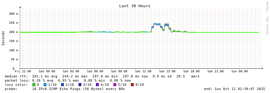 traceroute to 2402:1f00:8002:100::f72 (2402:1f00:8002:100::f72), 30 hops max, 80 byte packets - Generated at 2025-10-12 02:30:01