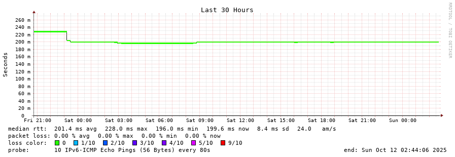 traceroute to 2604:2dc0:305::2:0:2b0 (2604:2dc0:305::2:0:2b0), 30 hops max, 80 byte packets - Generated at 2025-10-12 02:30:01