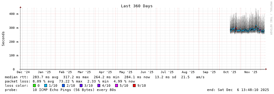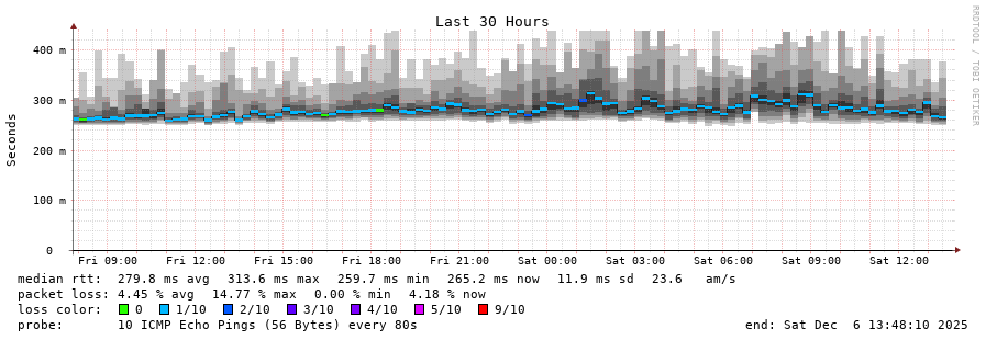 7 > 185.70.203.57 (185.70.203.57) [AS6762] 239.973ms 239.980ms 239.960ms