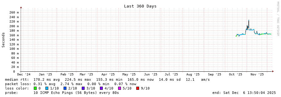 traceroute to 190.8.164.97 (190.8.164.97), 30 hops max, 60 byte packets - Generated at 2025-12-06 13:45:01