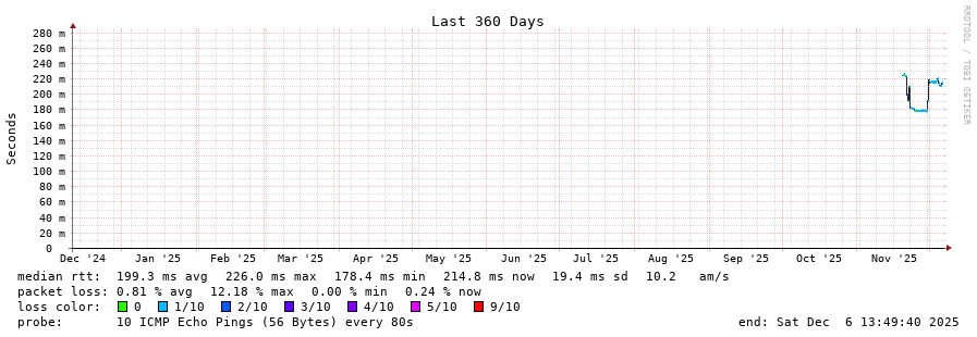 traceroute to 167.249.144.136 (167.249.144.136), 30 hops max, 60 byte packets - Generated at 2025-12-06 13:30:01