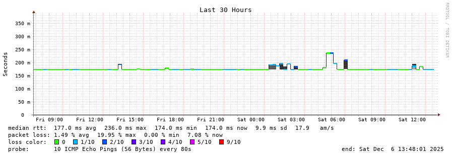 traceroute to 170.80.83.174 (170.80.83.174), 30 hops max, 60 byte packets - Generated at 2025-12-06 13:30:01