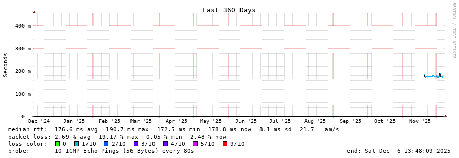 traceroute to 170.80.81.20 (170.80.81.20), 30 hops max, 60 byte packets - Generated at 2025-12-06 13:45:01