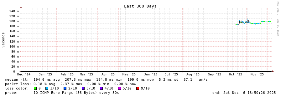 traceroute to 130.250.228.10 (130.250.228.10), 30 hops max, 60 byte packets - Generated at 2025-12-06 13:45:01