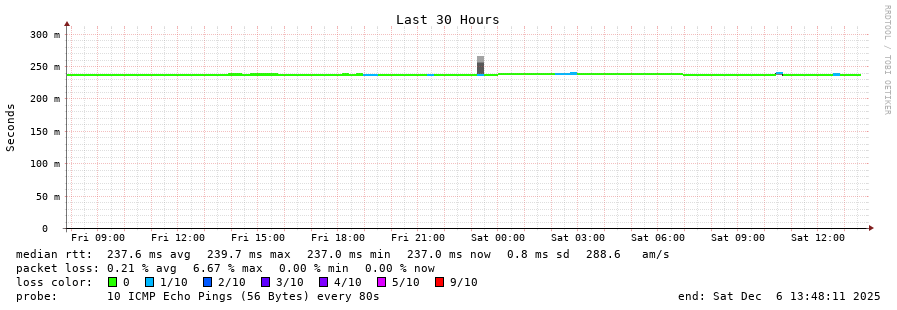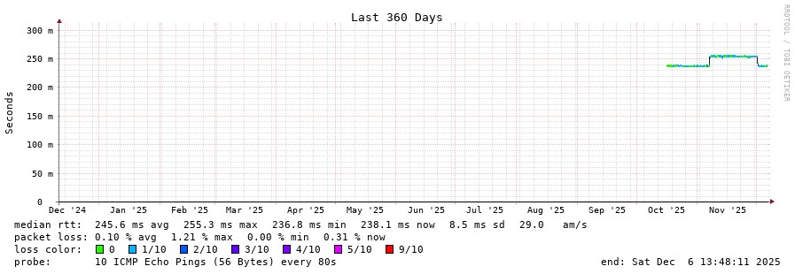traceroute to 190.105.0.2 (190.105.0.2), 30 hops max, 60 byte packets - Generated at 2025-12-06 13:45:01