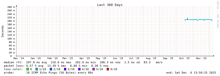 traceroute to 206.42.53.138 (206.42.53.138), 30 hops max, 60 byte packets - Generated at 2025-12-06 13:30:01