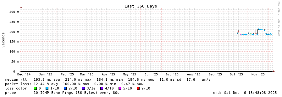 traceroute to 187.86.97.65 (187.86.97.65), 30 hops max, 60 byte packets - Generated at 2025-12-06 13:30:01
